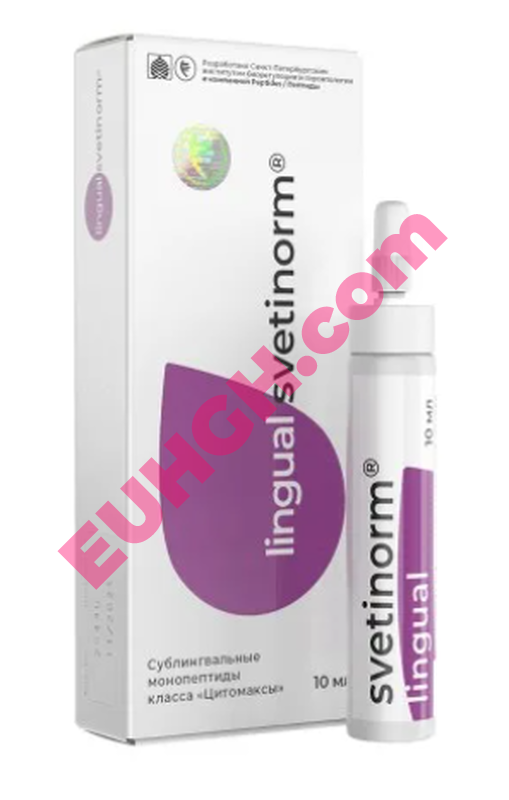The advantage of peptides released in linguistic form is the ability to independently and accurately adjust the dose. Drops begin absorption into the blood in the oral cavity, so the drug acts almost lightning fast. Svetinorm Lingual is allowed to be taken together with other peptide bioregulators in any form.