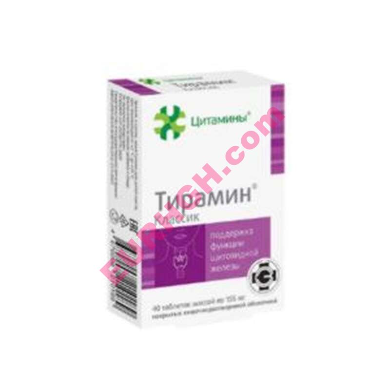 Tiramine is a complex of proteins and nucleoproteins derived from the thyroid glands of young calves, which are identical in protein composition to those of all mammals. Like all Cytamines, Tiramine acts specifically on the thyroid cells through a transcytosis mechanism and helps to normalise their function.